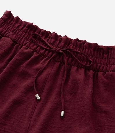 Short feminino Curve & Plus Size com cós alto elástico, garantindo ajuste confortável. Possui amarração frontal com cordão fino, ponteiras metálicas e bolso faca. O modelo tem caimento solto e barras retas, ideal para o dia a dia e para compor looks rápidos e práticos.
