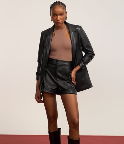 Ref: Short curto feminino confeccionado em material sintético, com cós liso, fechamento tradicional com bolso forrado e bainha dobrada.