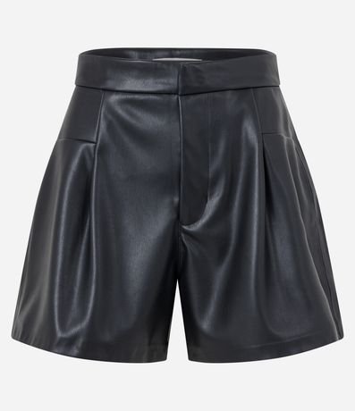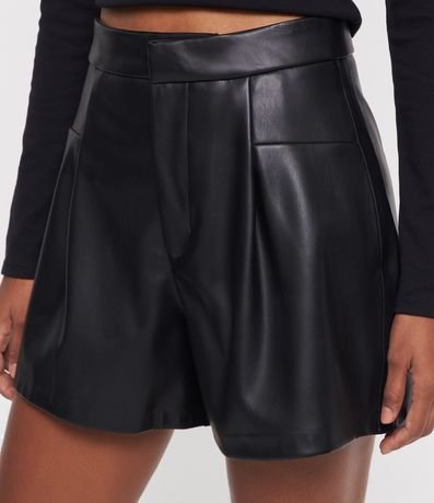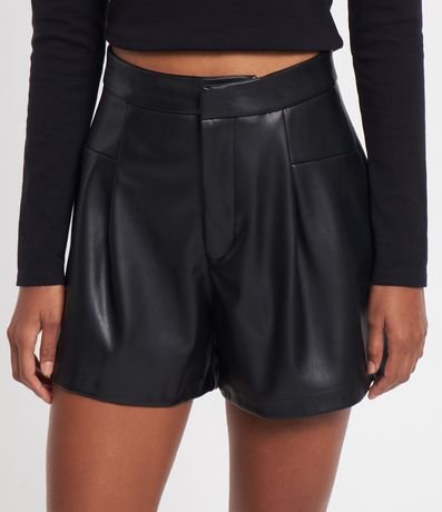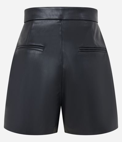 Ref: Short curto, em material sintético, pu, recorte frontais e bolsos embutidos na parte de trás.