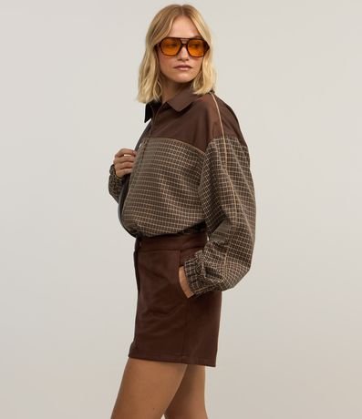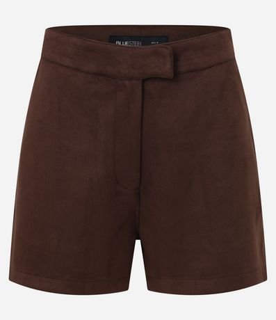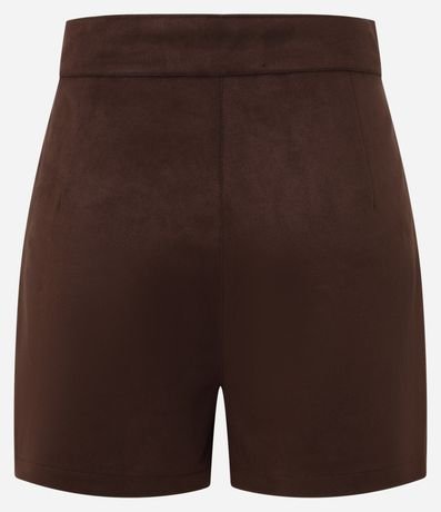 Ref: Short curto com fechamento por botão e zíper, sem estampa e confeccionado em suedine.