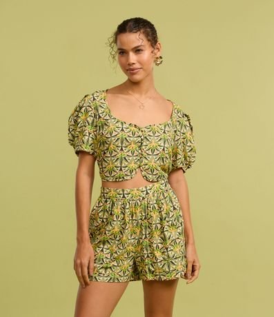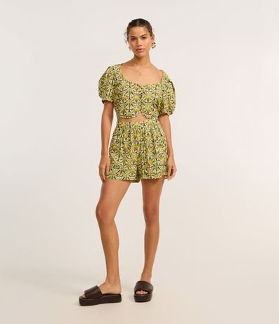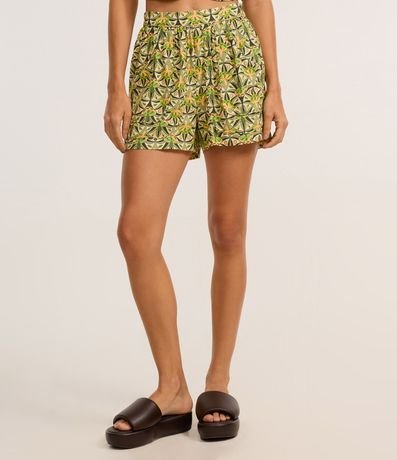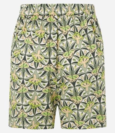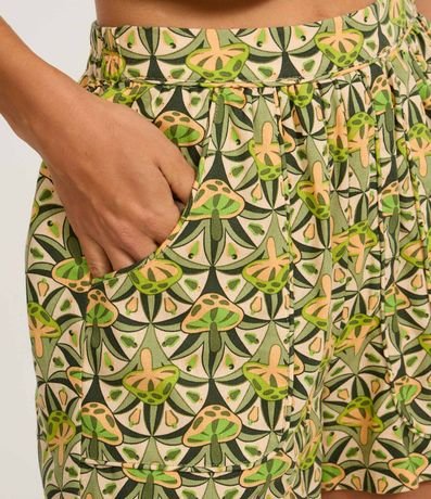 Ref: Short curto, confeccionado em viscolinho com cós elástico, preguinhas frontais e estampa de cogumelos.