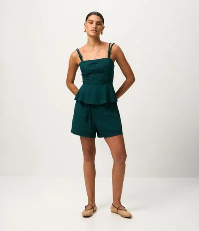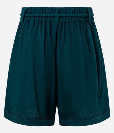 Ref: Short feminino confeccionado em viscose certificada. Possui cós elástico, faixa de amarração integrada, acompanhada de detalhe frontal em corda. Conta com acabamento pespontado, oferecendo estrutura ao molde.