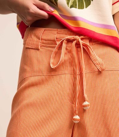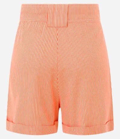 Ref: Short curto com passantes largos no cós, cordão para ajuste, listrado, recortes frontais e barra dobrada.