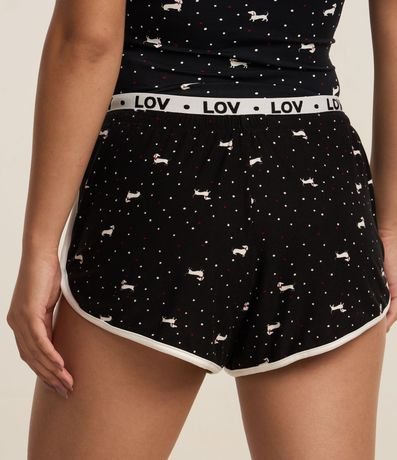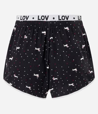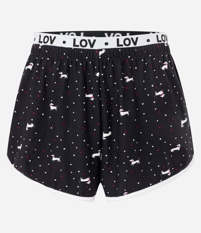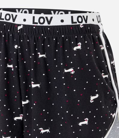 Ref: Peça avulsa de pijama curto. O short tem cós elástico contrastante e estampa de cachorrinhos salsichinha e corações.