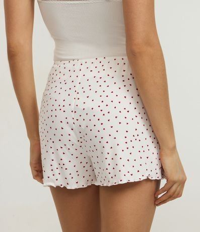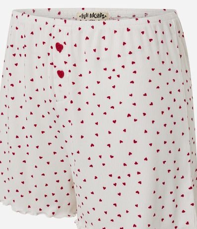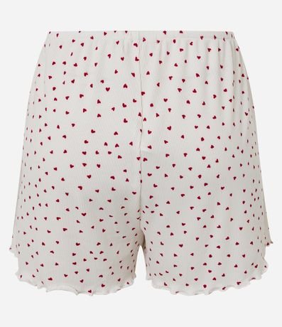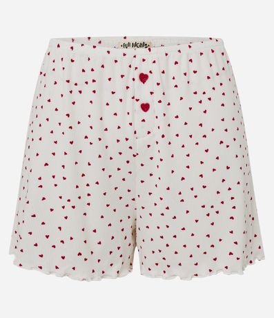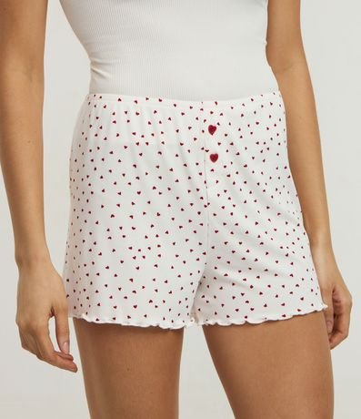 Ref: Peça avulsa de pijama confeccionada em ribana. O short tem cintura elástica, botões decorativos, estampa de mini corações e barra de frufru.