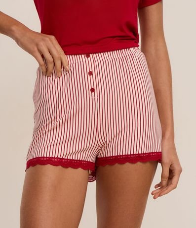 Ref: Peça avulsa de pijama confeccionada em viscose. O short tem cintura elástica, estampa listrada e rendinha na barra.