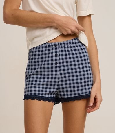 Ref: Peça avulsa de pijama confeccionada em viscose. O short tem cintura elástica, estampa xadrez e rendinha na barra.