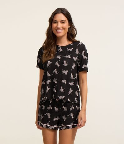 Ref: Short de pijama confeccionado em peach touch com estampa de gatos.