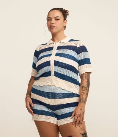 Ref: Short confeccionado em algodão com efeito crochê listrado. A peça é forrada, evitando transparências indesejadas.
