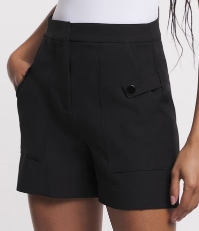 Ref: Short em alfaiataria com cintura alta, bolsos aplicados com martingale, botões com resina e fechamento por zíper com vista oculta.