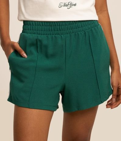 Ref: Short feminino com cós elástico, sem abertura, bolsos e detalhe de listra frontal.