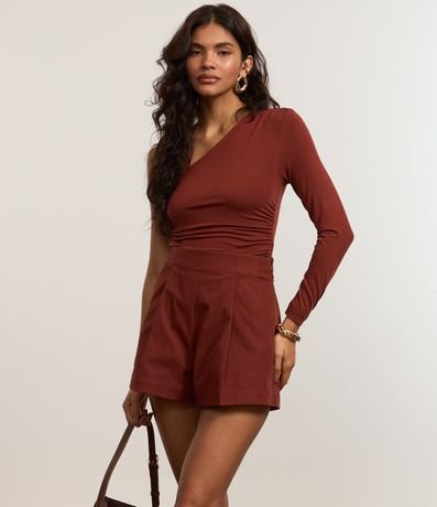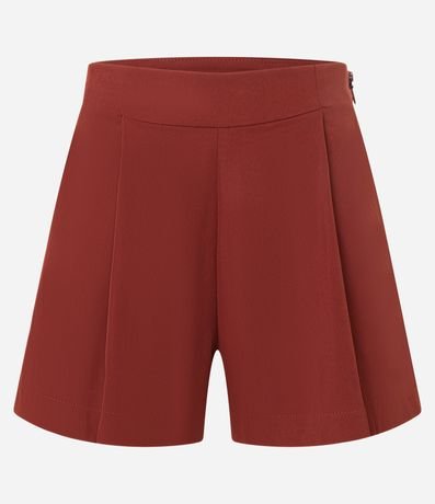 Short com corte alfaiatado, fechamento por zíper na lateral, recorte frontal e bolsos.