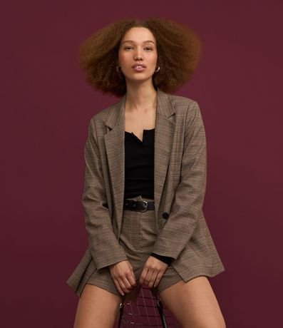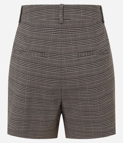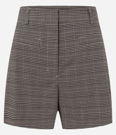 Ref: Short feminino confeccionado em alfaiataria, com passantes no cós, fechamento frontal com zíper e estampa xadrez.