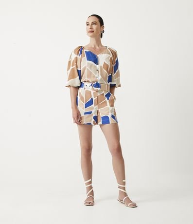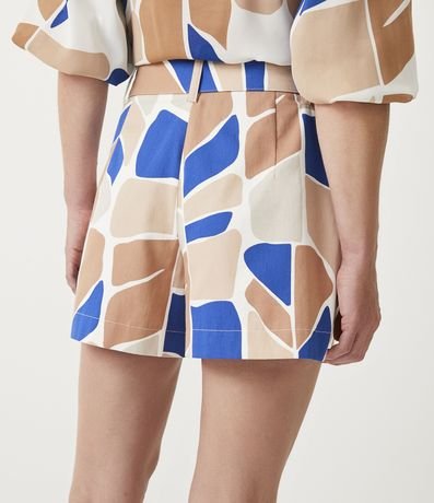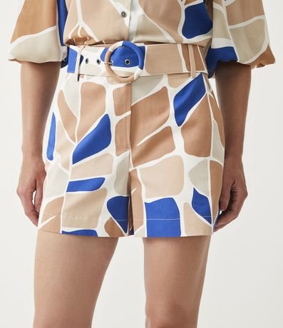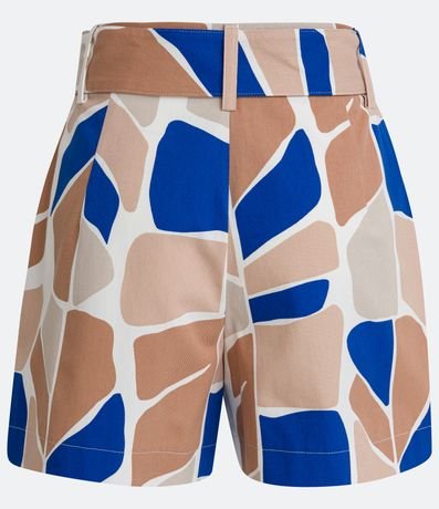 Short em Algodão com Cinto e Fivela Forradas com Estampa Folhagem