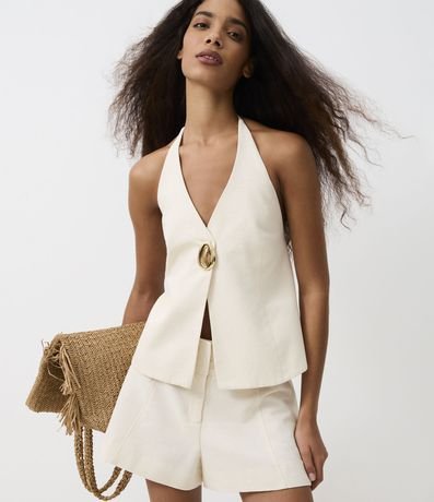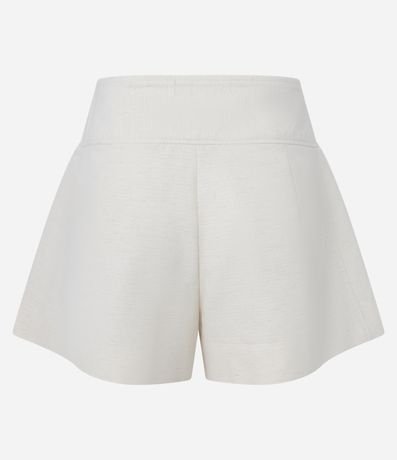 Ref: Short de pala larga, confeccionado em algodão com 03% de linho, com fechamento tradicional e pences atrás. Este produto possui algodão certificado BCI em sua composição, além de ter sido produzido através de processos mais sustentáveis, sendo ambientalmente mais responsável. A peça faz parte da collab Ateliê Mão de Mãe.