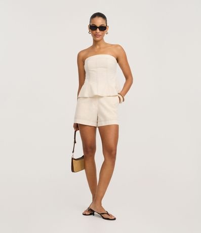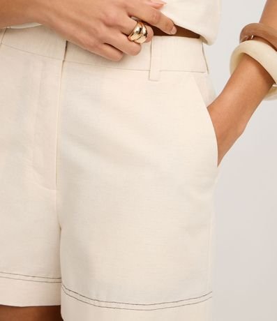 Ref: Short confeccionado em algodão com 04% de linho, com passantes no cós, fechamento tradicional, bolsos frontais e costuras aparentes. Este produto possui material mais sustentável em sua composição, sendo ambientalmente mais responsável.