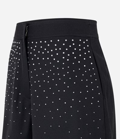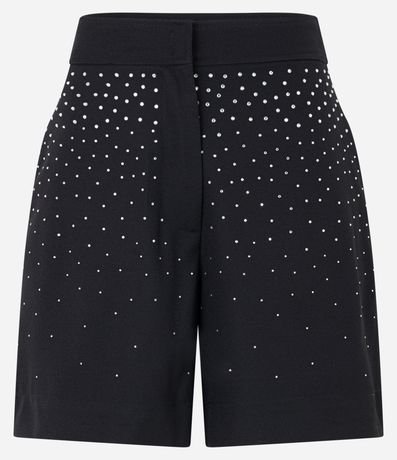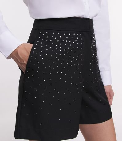Ref: Short em crepe, com fechamento frontal, bolsos e aplicação de strass.