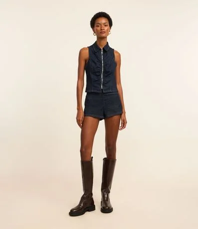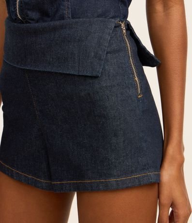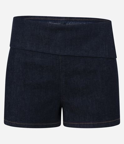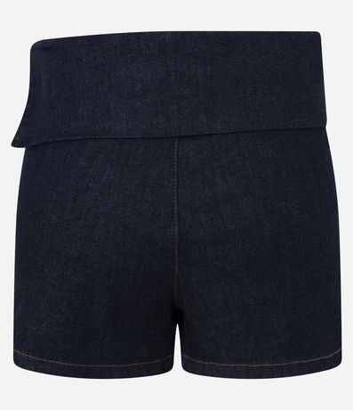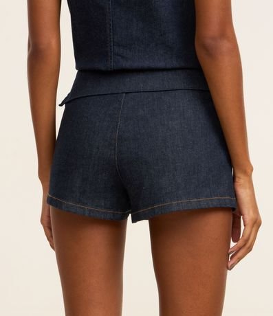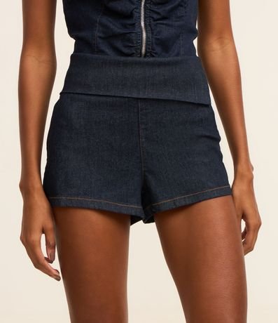 Ref: Short feminino confeccionado em jeans de algodão certificado bci, peça com cós fixo com pala dobrada.