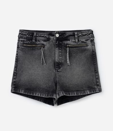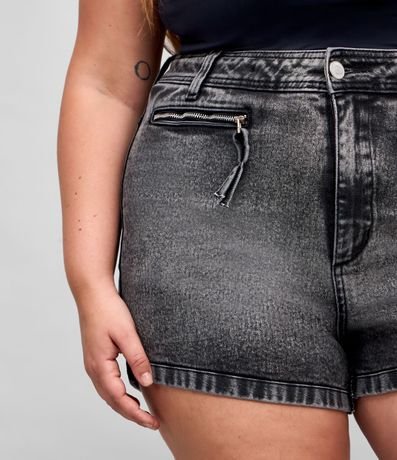 Ref: Short jeans plus size, com elástico no interior do cós e bolos frontais com zíper.