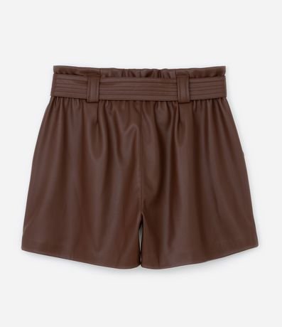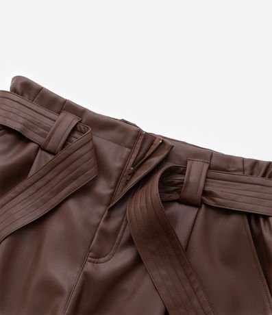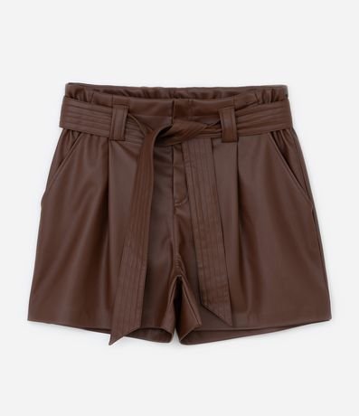 Short plus size confeccionado em material sintético. Peça com passantes na cintura, pregas frontais, bolsos facas e cinto faixa para amarração.