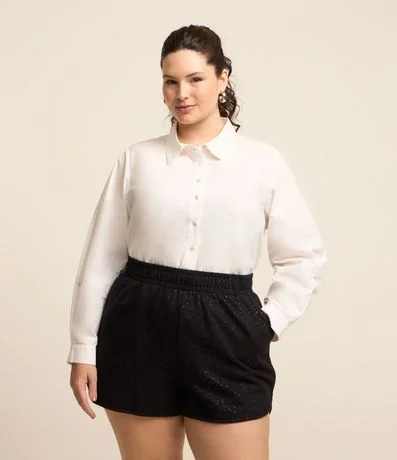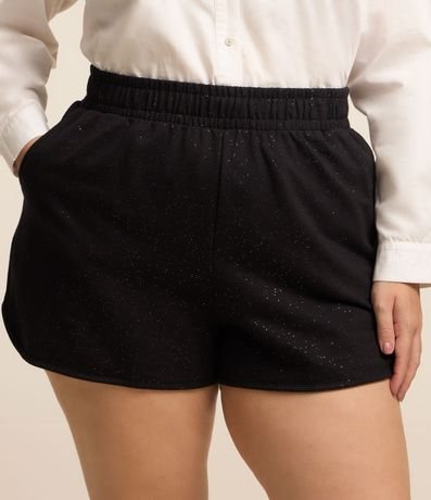 Ref: Short feminino plus size, confeccionado em moletinho, com cós elástico e aplicação de glitter.