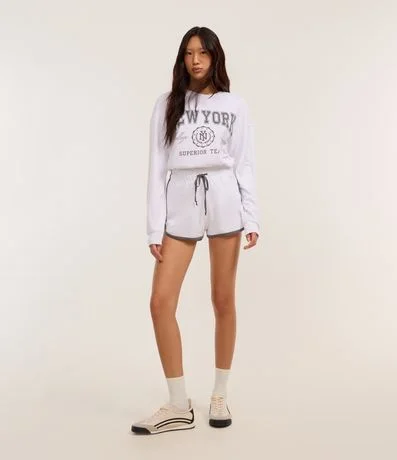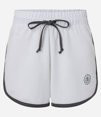 Ref: Short regular com cós elástico, cordão para ajuste, confeccionado em moletom com forro quentinho em fleece e viés contrastante.
