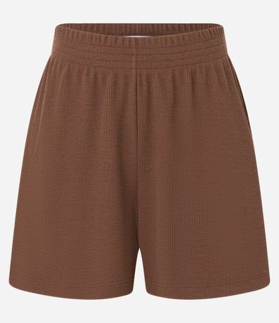 Ref: Short curto, soltinho confeccionado em ribana com leve textura, bolsos laterais e sem estampa.