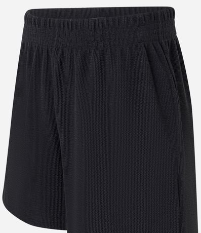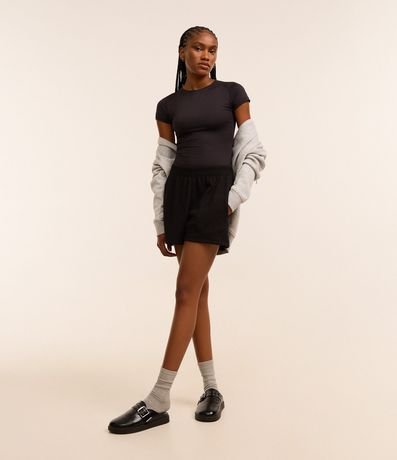 Ref: Short curto, soltinho confeccionado em ribana com leve textura, bolsos laterais e sem estampa.