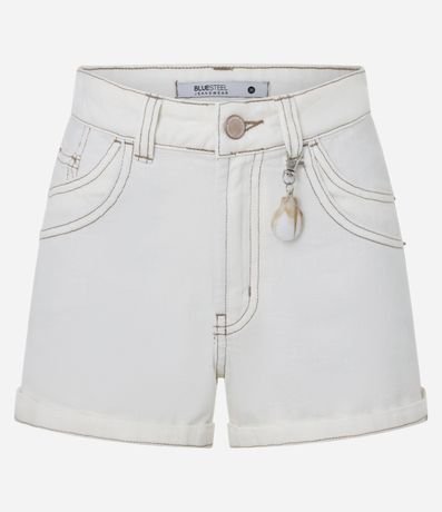 Short em Sarja com Bolsos Duplos e Pingente de Conchinha