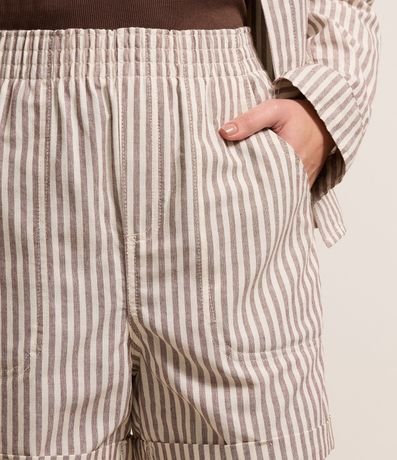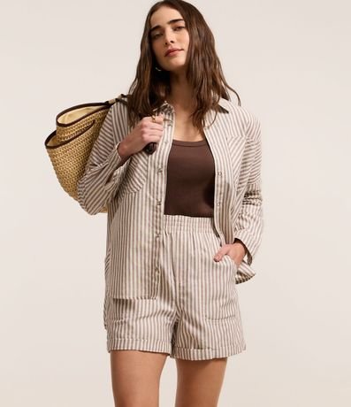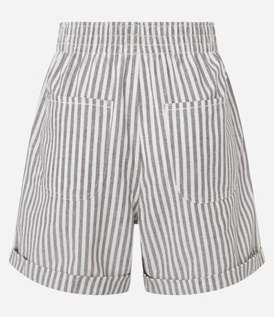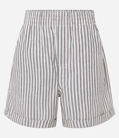 Ref: Short de com cintura alta, confeccionado em sarja com algodão bci, listras em fio tinto e barra dobrada.