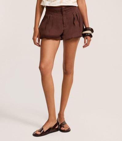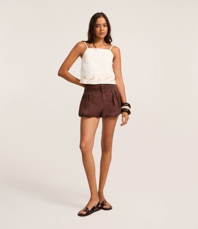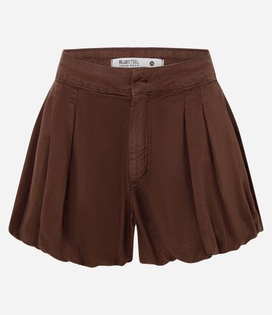 Short confeccionado em sarja com fechamento tradicional, pregas e barra ajustada. As pregas e as barras ajustadas conferem uma carinha com balonê ao shortinho. Este produto possui material mais sustentável em sua composição, sendo ambientalmente mais responsável.