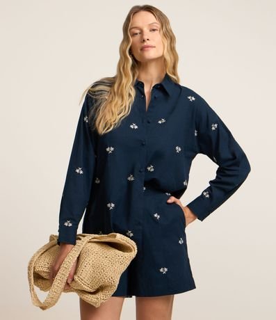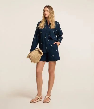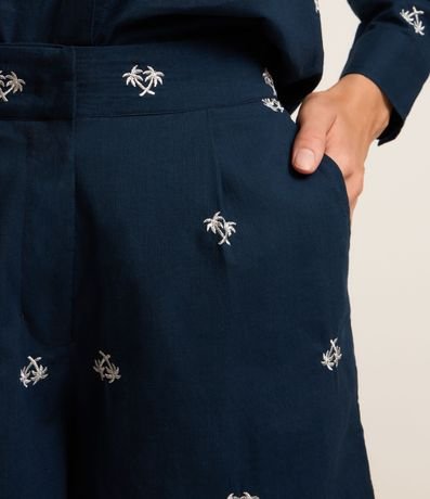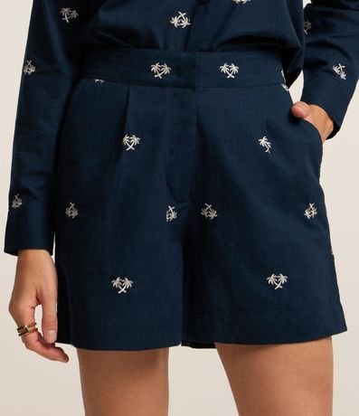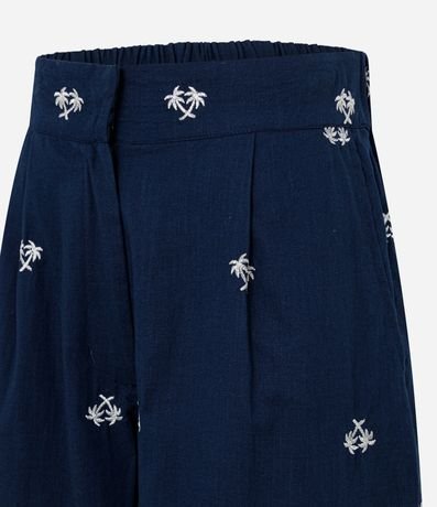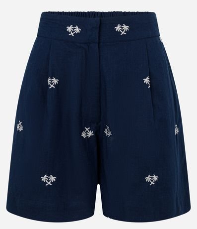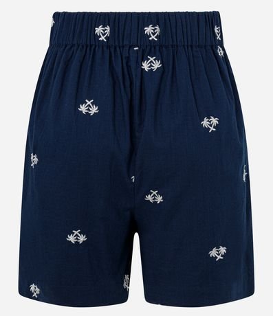 Short em Tricoline com Cós Elástico e Bordado Mini Coqueiros