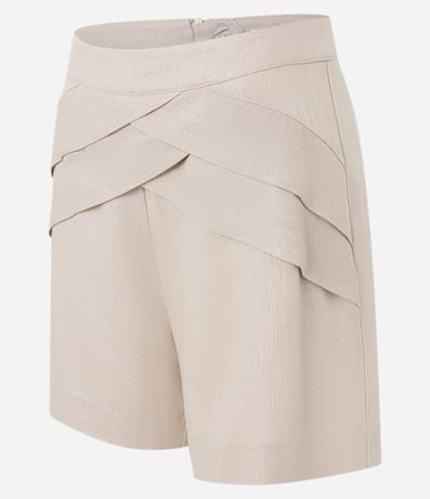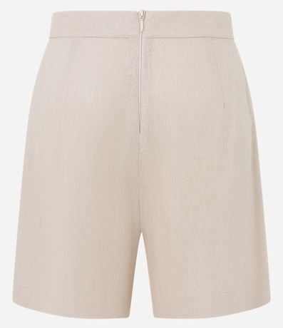 Ref: Short feminino, confeccionado em viscolinho mais sustentável, com cintura alta, foil, pregas diagonais, zíper e botões.