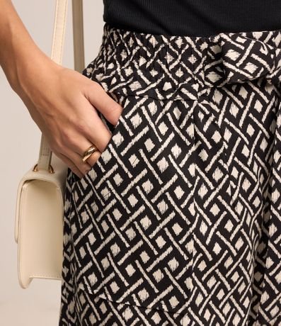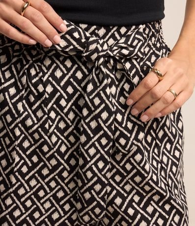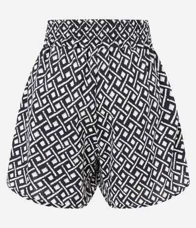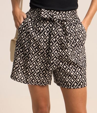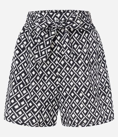 Ref: Short feminino, confeccionado em viscolinho, com cós elástico e amarração. A peça também conta com estampa geométrica.