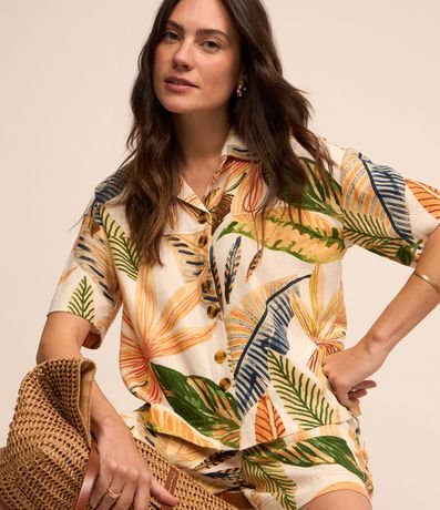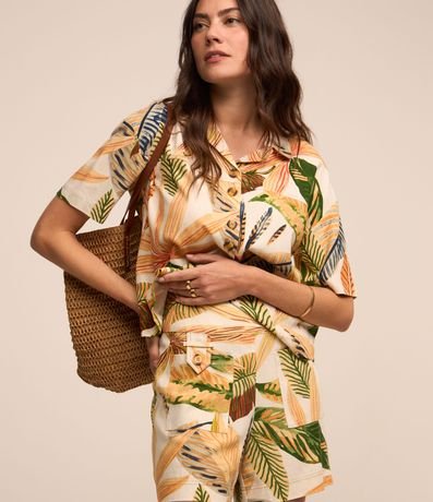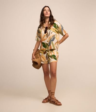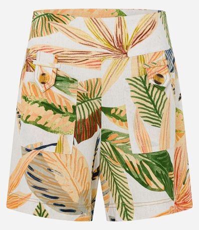 Ref: Short feminino, confeccionado em viscolinho, com cós largo e bolsos frontais. A peça também conta com estampa folhagem.