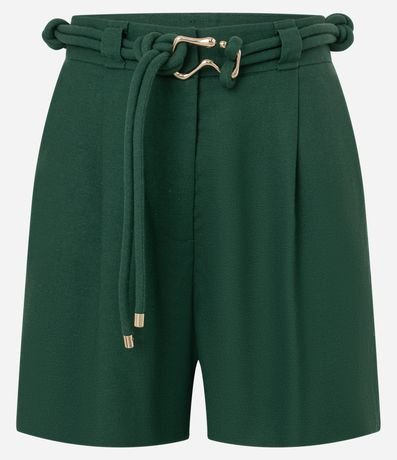 Ref: Short feminino confeccionado com viscose, linho e poliéster. Possui cinto corda duplo com detalhe de fivela metalizada.