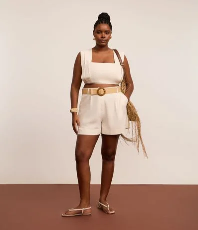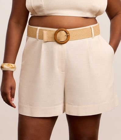 Short em Viscolinho com Cinto Efeito Ráfia Curve & Plus Size