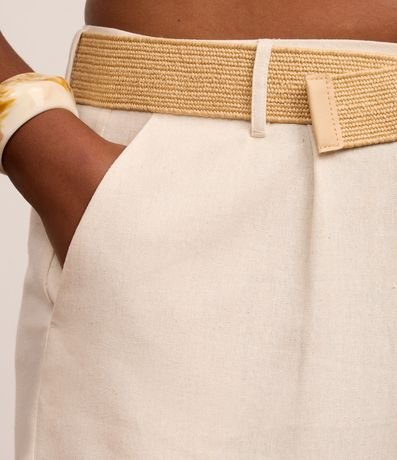 Short feminino Curve & Plus Size confeccionado em viscolinho com cós fixo e passantes, fechamento tradicional por vista oculta, bolsos. Peça acompanha cinto médio com efeito ráfia de fivela redonda.