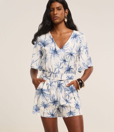 Ref: Short confeccionado em viscolinho com elástico na cintura e estampa de coqueiros. Este produto possui viscose certificada em sua composição, sendo ambientalmente mais responsável.