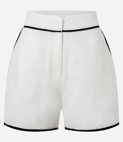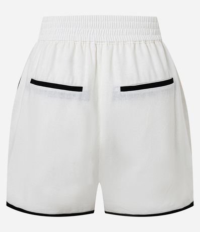 Ref: Short de viscolinho, com elástico no cós, bolsos falsos atrás e vieses contrastantes. Este produto possui viscose certificada em sua composição, sendo ambientalmente mais responsável.