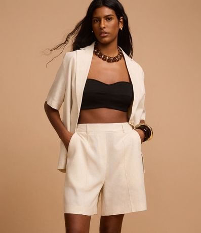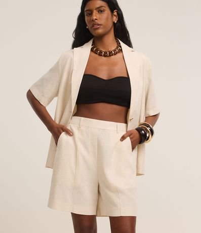 Ref: Short confeccionado em viscolinho com passantes no cós, bolsos e frisos frontais. Este produto possui viscose certificada em sua composição, sendo ambientalmente mais responsável.
