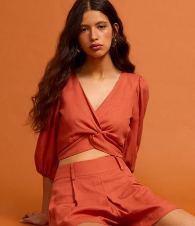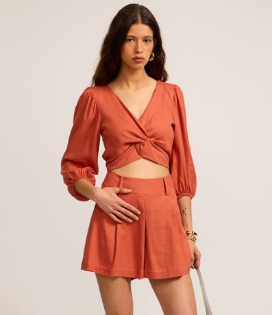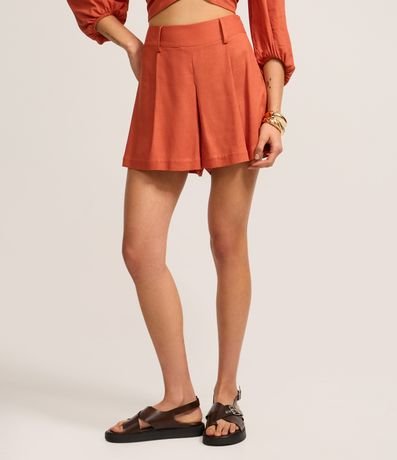 Ref: Short feminino curto com cós passante e pregas. Produto confeccionado com linho e viscose certificado.