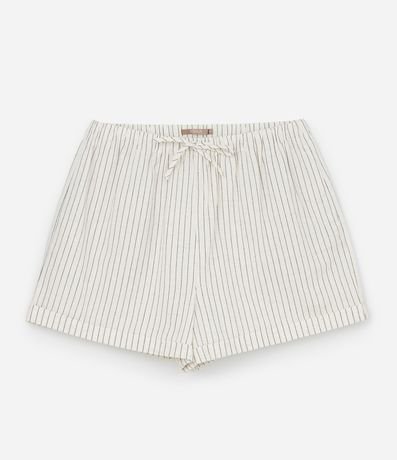 Ref: Shortinho de viscolinho, modelo pijama, com amarração na cintura, bolsos e estampa listrada vertical.