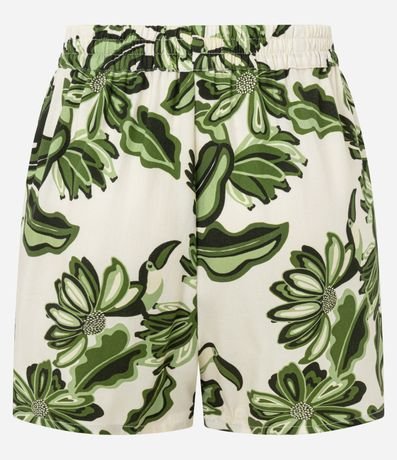 Short em Viscose com Folhas e Cós Elástico com Amarração