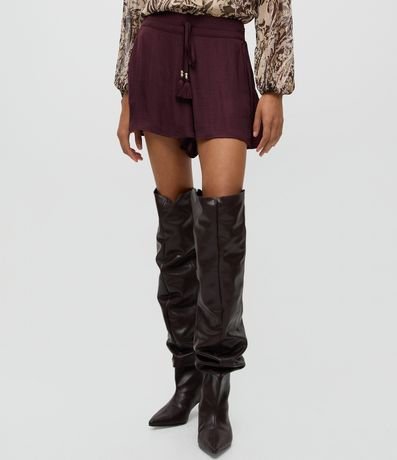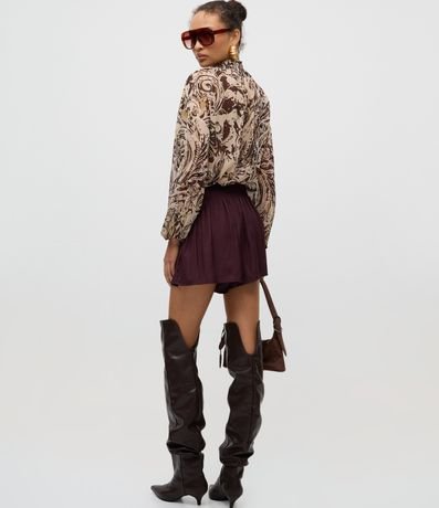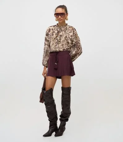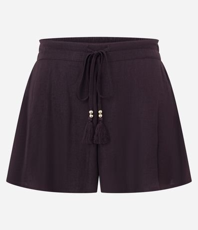 Ref: Short acetinado com modelagem evasê e cintura alta, proporcionando caimento leve e elegante. Possui amarração frontal com tassel decorativo e acabamento brilhoso que valoriza produções modernas e sofisticadas. Peça versátil para compor looks atuais em tecido de poliéster acetinado.