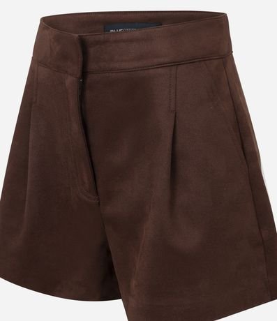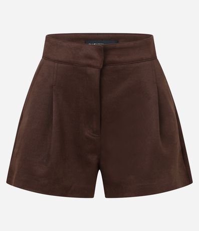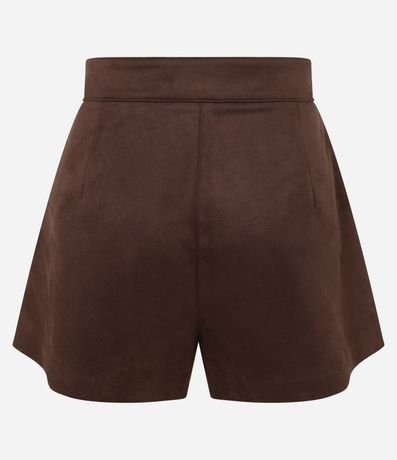 Ref: Short feminino confeccionado em suede, com cós reto e fico e sem estampa. A peça possui corte evasê, bolsos faca nas laterais e pregas frontais.