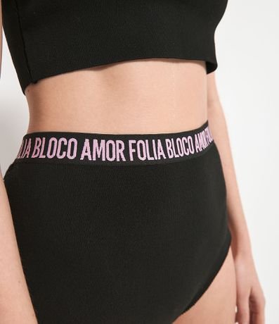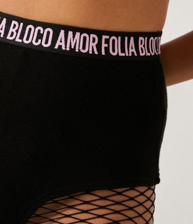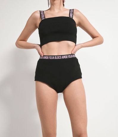 Ref: Short hot pants em malha retilínea com lettering "Bloco Amor Folia" no cós. Confeccionado em material responsável.