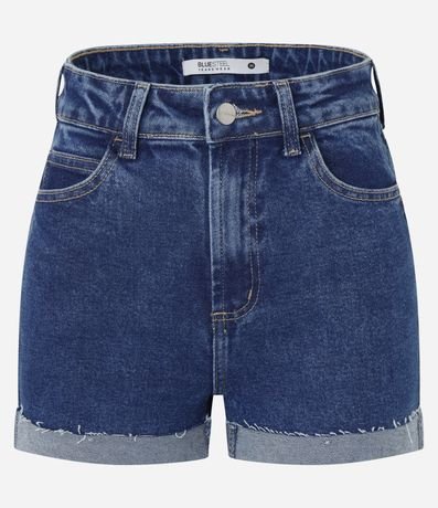 Short Hot Pants em Jeans com Cintura Alta e Barra Dobrada