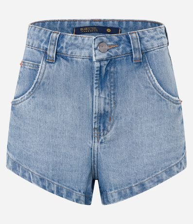 Ref: Short hot pants em jeans dirty, cós com passantes, bolsos frente e costas e sem estampa.