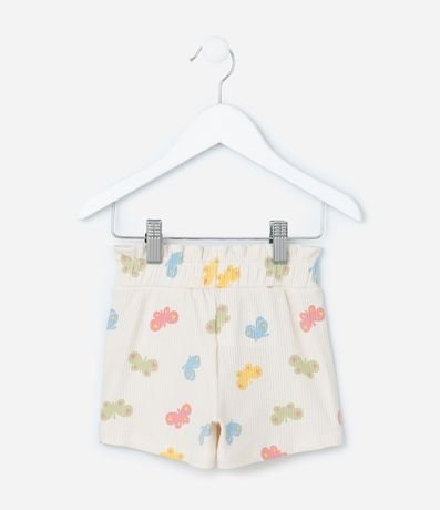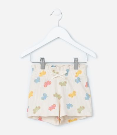 Ref: Short infantil com textura caneladinha, cós elástico e estampa de borboletinhas. O item é confeccionado com boas práticas ambientais e algodão certificado bci.